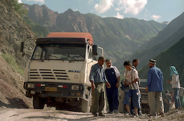 Départ de Dushanbe, le compte à rebours est lancé et il me reste 6 jours pour quitter le pays. Je trace, encore à moitie défoncé de toutes les dernières soirées. Fsio la capitale, c'étais d'la balle ! Je sors en marchouthka de la ville, et c'est reparti avec les camions. Route jusqu'a Ayni en KAMAZ, le tunnel d'Anzob est toujours fermé et c'est donc encore un passage par le col à 3300m. Merde alors, j'aurais vraiment voulu le prendre ce tunnel, apparemment un truc de ouf : neuf mais dans un état déplorable, de la flotte partout à l'intérieur, pas une lumière, pas de ventilation (un chauffeur de camion y est d'ailleurs décédé il n'y a pas longtemps). Bref, le truc est donc en stand-by et des équipes iraniennes y travaillent pour améliorer tout ca.